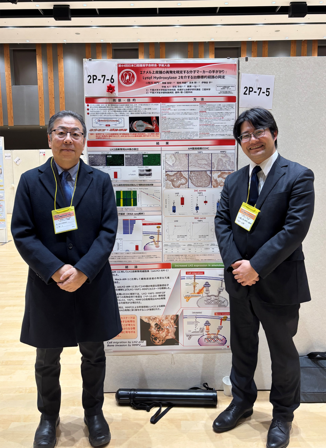 2026/1/22~23にライトキューブ宇都宮で開催された第44回日本口腔腫瘍学会総会・学術大会に参加・発表しました。生川 太門先生が基礎研究の成果を発表し、優秀ポスター賞を受賞しました。鵜澤教授は、一般演題(口演)「周術期」セッションの座長を務められました。本研究では、エナメル上皮腫におけるLH2の役割を明らかにすることを目的とし、基礎実験・臨床症例の両面から検討を行いました。学会当日は、多くの先生方から建設的なご意見やご助言をいただき、研究の今後の方向性を再確認する貴重な機会となりました。