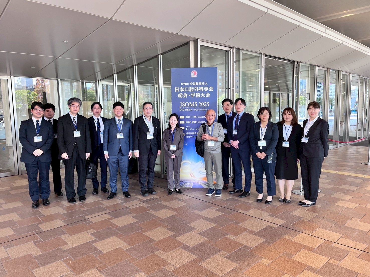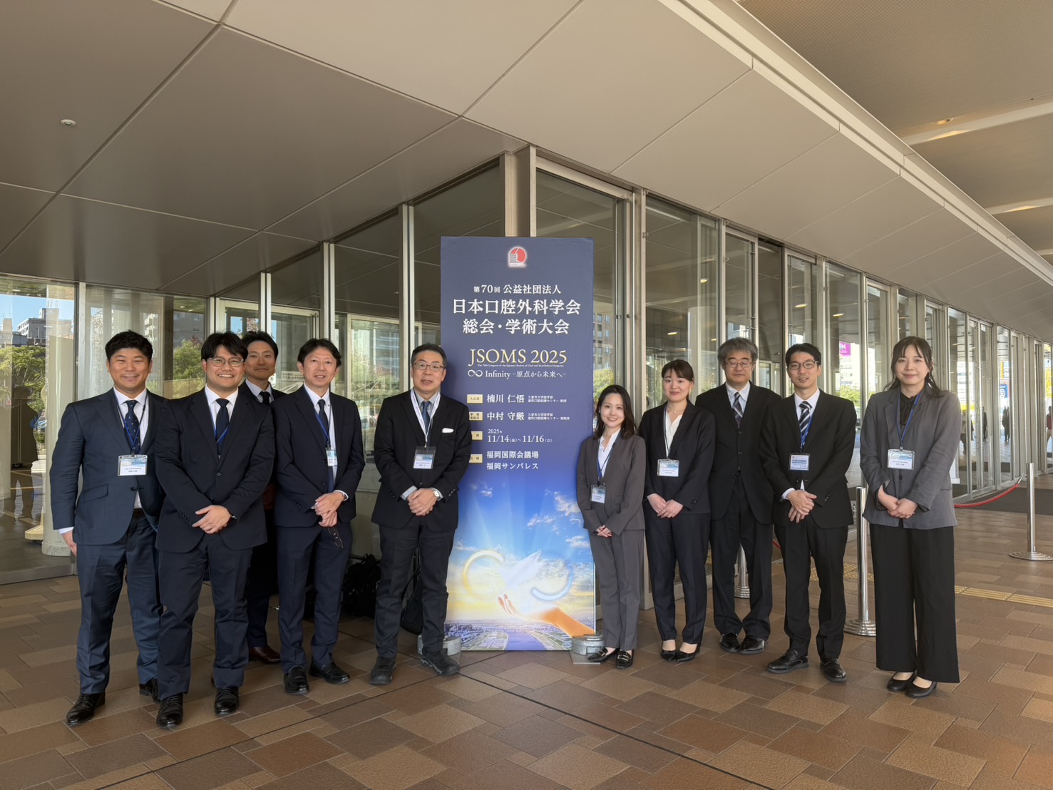 2025/11/14~16に福岡市福岡国際会議場・福岡サンパレスで開催された第70回日本口腔外科学会総会・学術大会に参加・発表しました。川崎晃平先生・白藤由惟先生が症例報告、津川野の花先生が基礎研究の成果を発表しました。鵜澤教授は、「症例報告 再生医療3」のセッションの座長を務められました。気候にも恵まれ、学会中は共同研究をしているUNC山内教授や関連病院の先生方、他大学の先生方と深い交流やディスカッションを行うことができました。