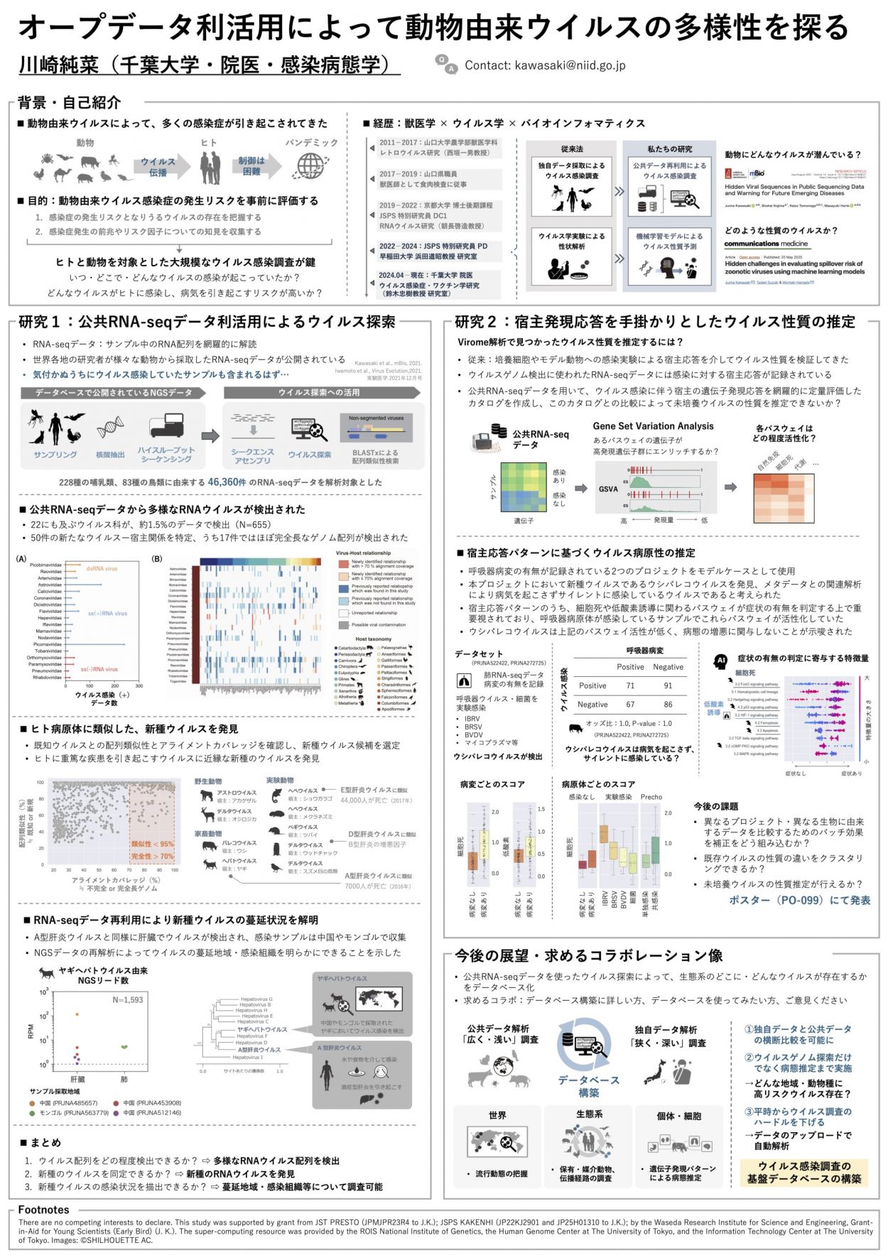 私は獣医師としての視点と、バイオインフォマティクス技術を活かして、動物由来ウイルスについての研究を推進しています。