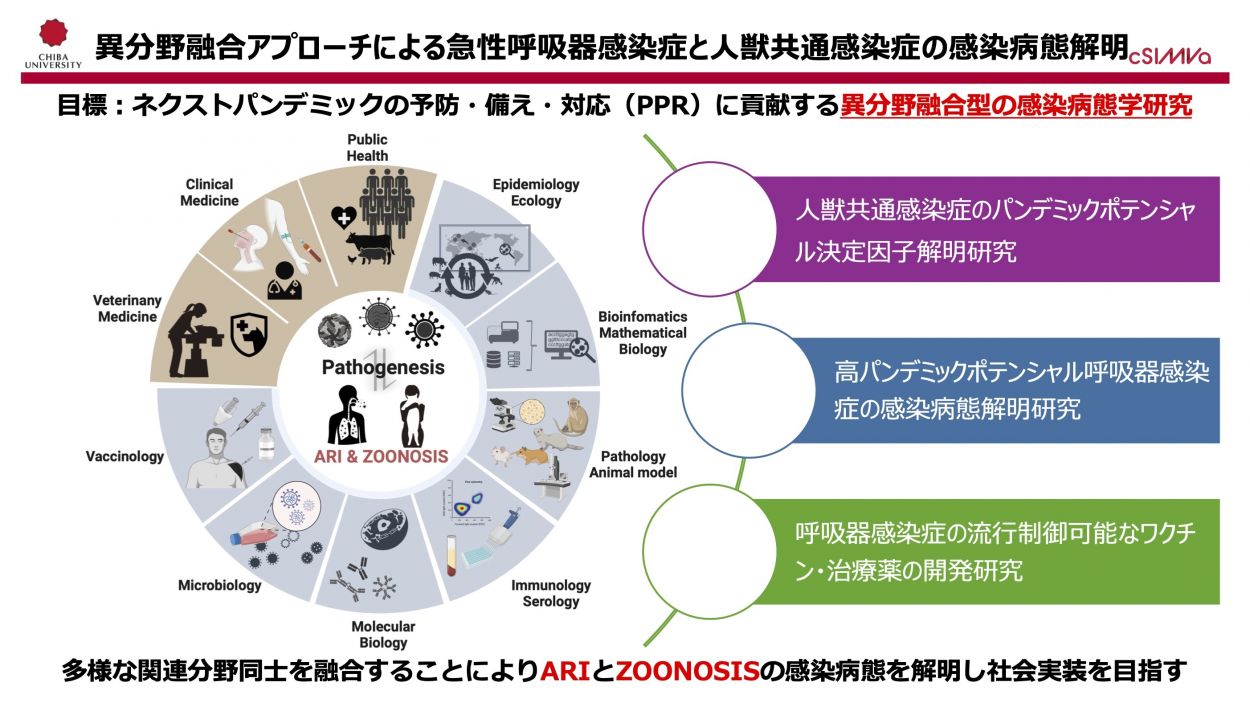 感染病態学研究室では、ネクストパンデミックの予防・備え・対応(PPR)に貢献することを目指し、異分野融合による感染病態学研究を推進しています。