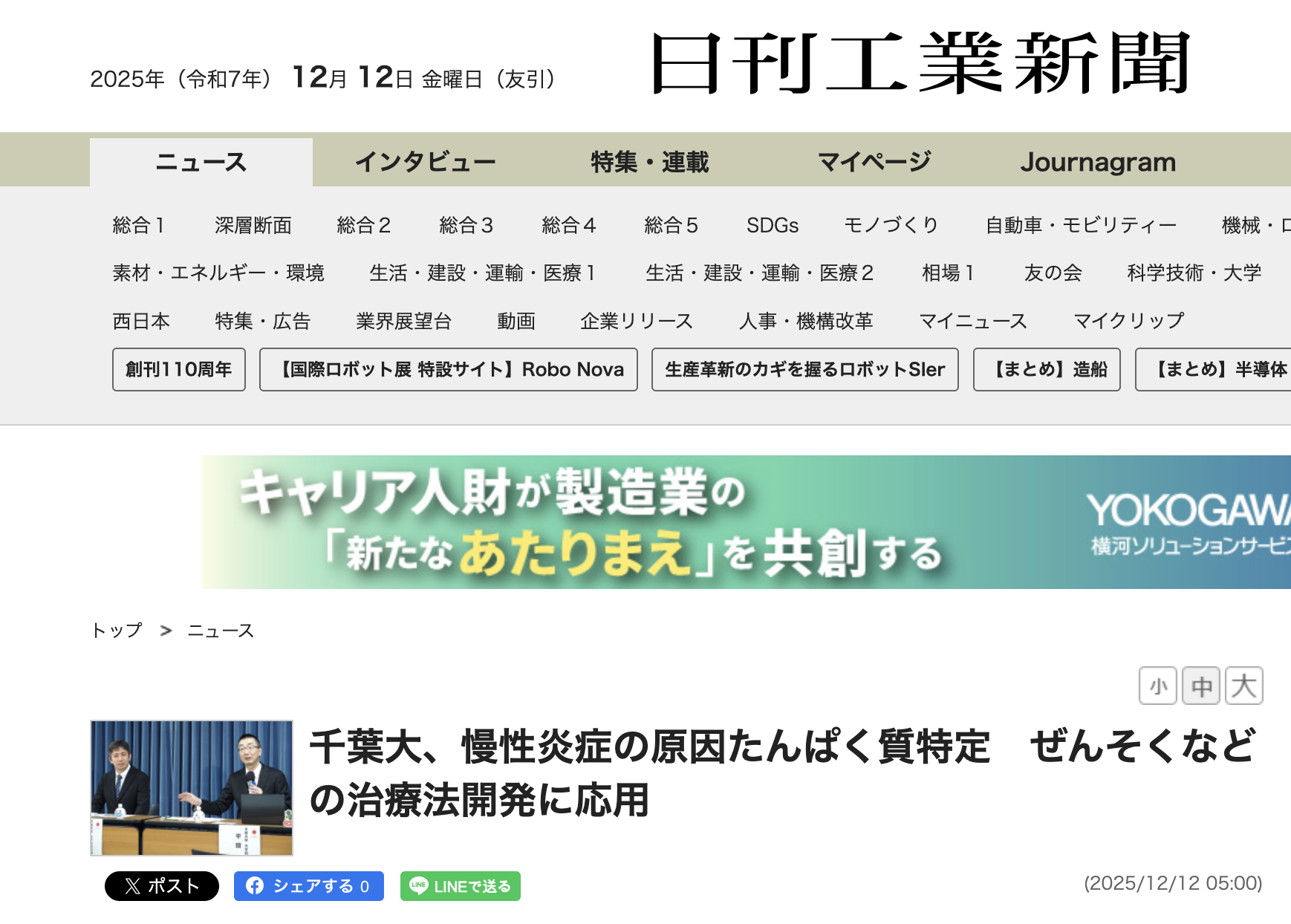 木内政宏先生の炎症性-組織常在性記憶CD4 T細胞の誘導機構に関する研究論文が、Science誌に掲載されました。 千葉大学からプレスリリースを発表し、共同通信、読売新聞、朝日新聞、日刊工業新聞、時事通信社、日本経済新聞、各メディアに取り上げられました。
